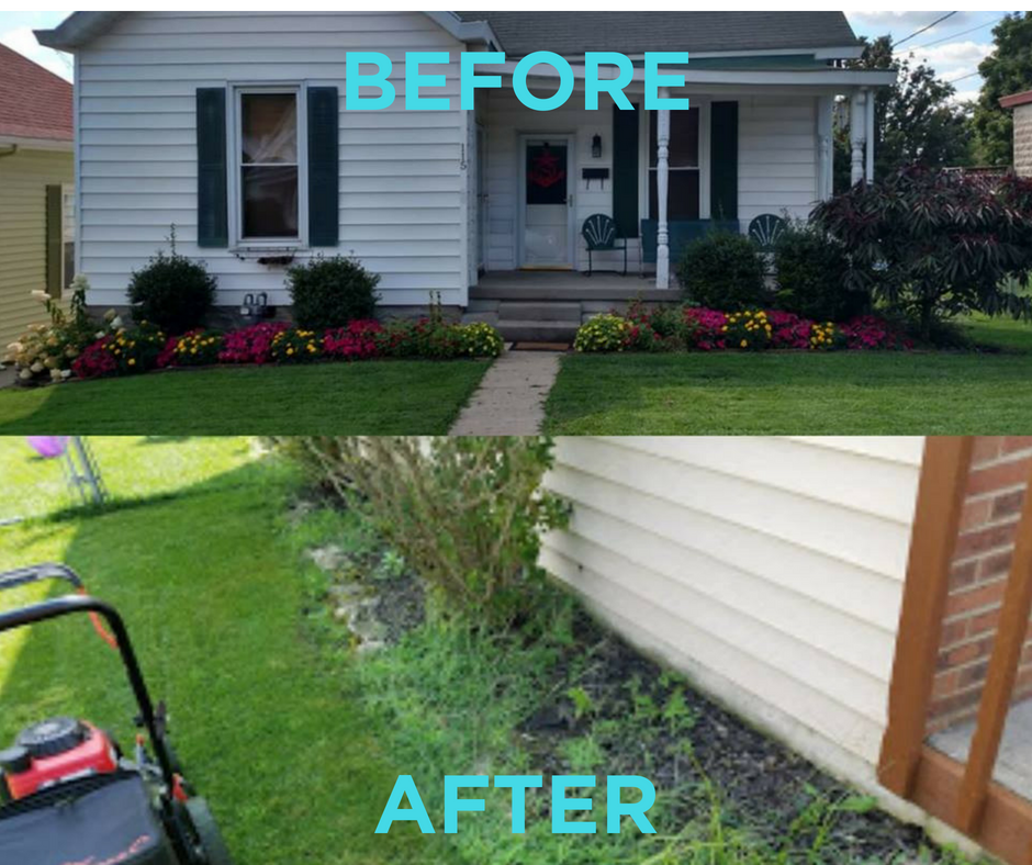 Not long after seeing that picture, I went outside to mow the yard at our new house and snapped a picture of what those flowerbeds look like: